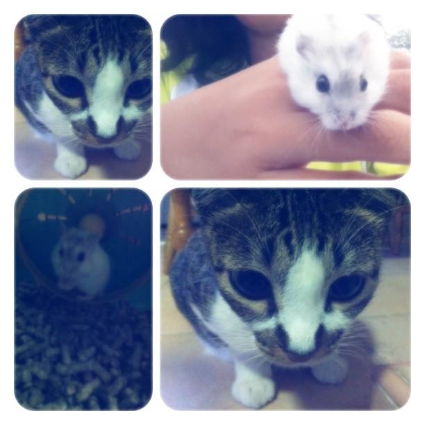 Hahahah, so now we got one cat, Casey, one male hamster, Abel and one female hamster, Arba. HAHAHAH.